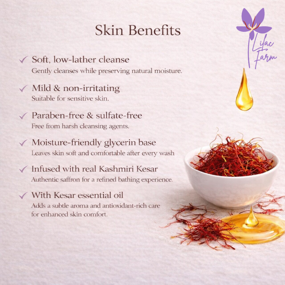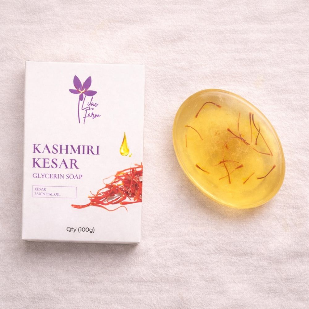 A nourishing glycerin soap infused with pure Kashmiri Kesar and natural kesar essential oil, offering a soothing cleanse with added aromatic depth.